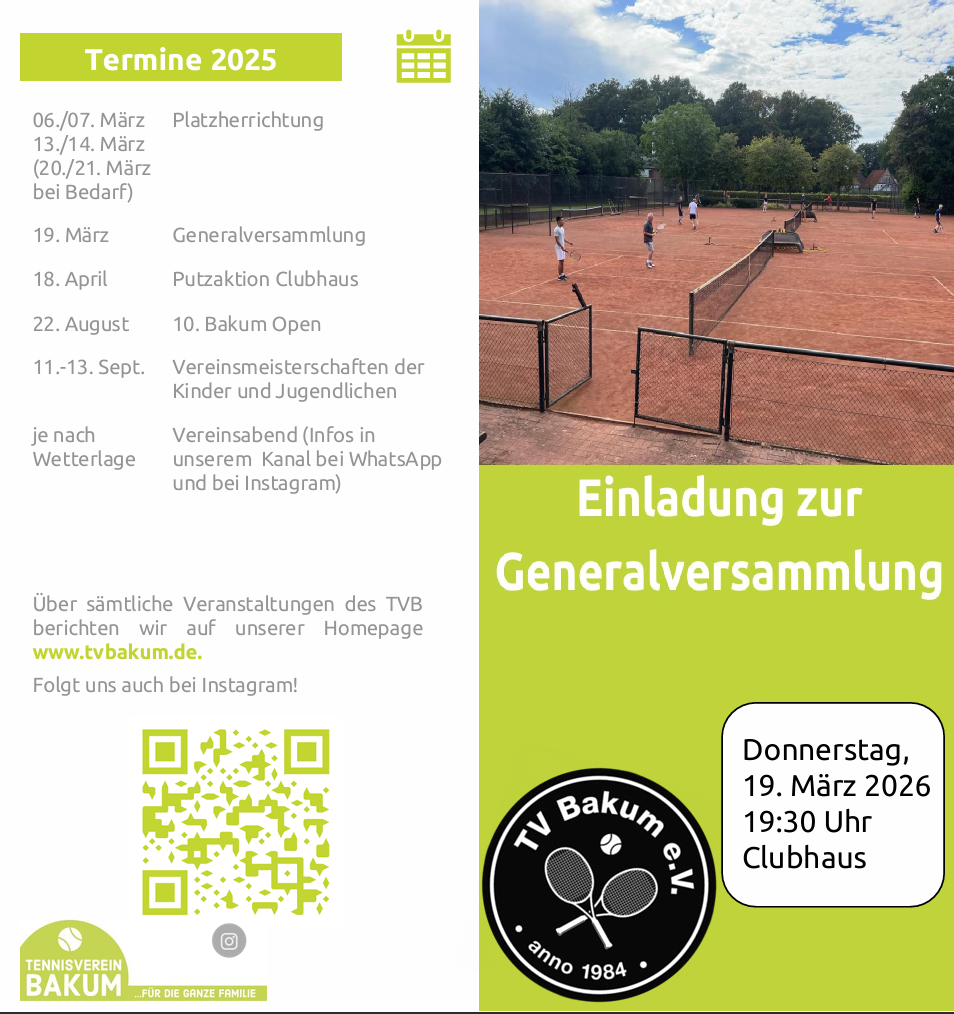 Bei bestem Tenniswetter trafen sich 30 Kinder und Jugendliche des TV Bakum, um die neuen Vereinsmeisterinnen und Vereinsmeister im Nachwuchsbereich auszuspielen. Schon beim Betreten der Anlage war klar: Hier geht es nicht nur um Punkte, sondern auch um Spaß, Applaus und die beste Auswahl am Kuchenbuffet – dank vieler Eltern...